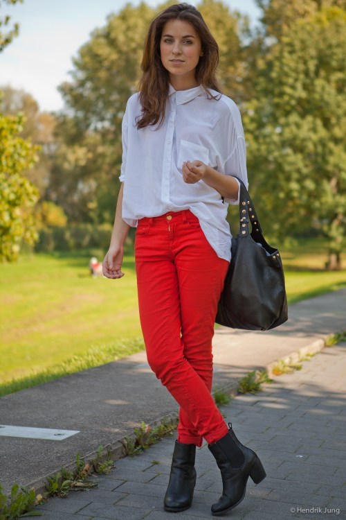 Luckily, summer decided to have a small comeback this week – summer in Cologne was a total let-down this year, so I’m thankful for every bit of warmth and light. Wardrobe-wise I left my sweater and trench in the closet and wore a flowy button up shirt from stradivarius, red jeans from gina tricot, boots from dinsko and a bag from parfois. Since the red jeans are so loud, I usually prefer to numb the color down with a softer shade of red, brown or beige in form of a sweater. Looks great over the button up.