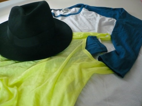 recent addition to my closet: a fluo tank top and a long sleeve from weekday and a long needed replacement for my old black hat from h&m