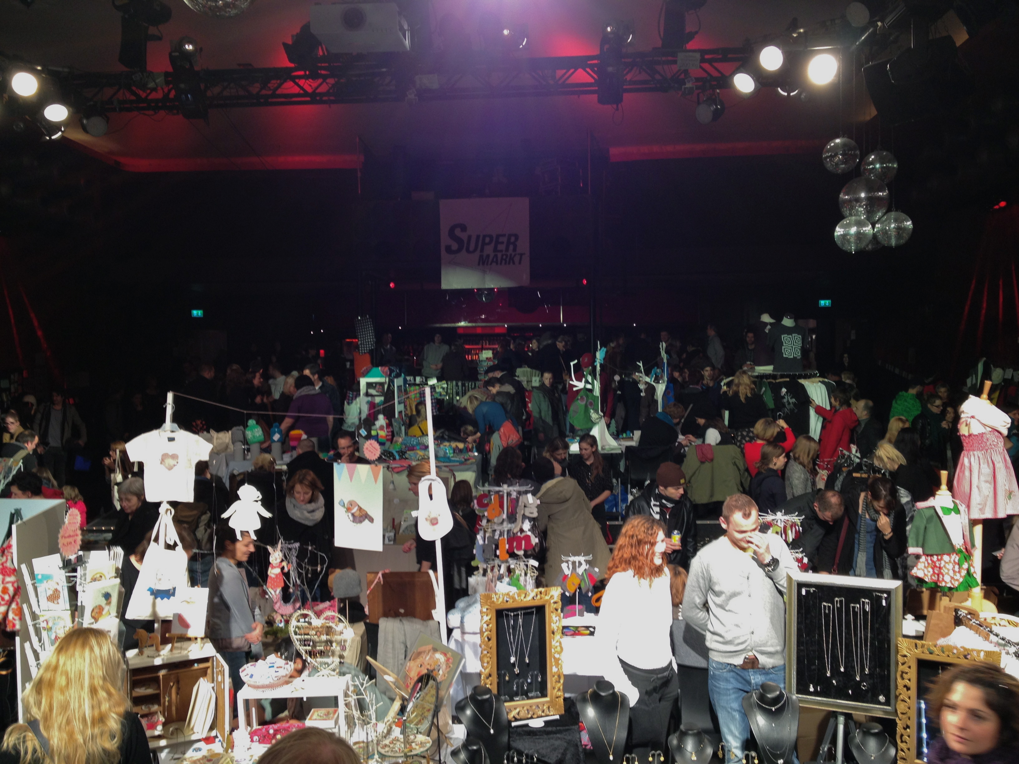 Anyway. December first means people are opening the first door of their Adventskalendar, one of my favorite German traditions. It’s on. Another great german tradition is Weihnachtsmarkt. A market where you can buy all sorts of things from trimmings for the christmas tree and festive decoration to roasted almonds and waffles. These markets are a great tourist attraction so I welcomed the oppurtunity to visit a more alternative market which was held at a local club called Gloria.