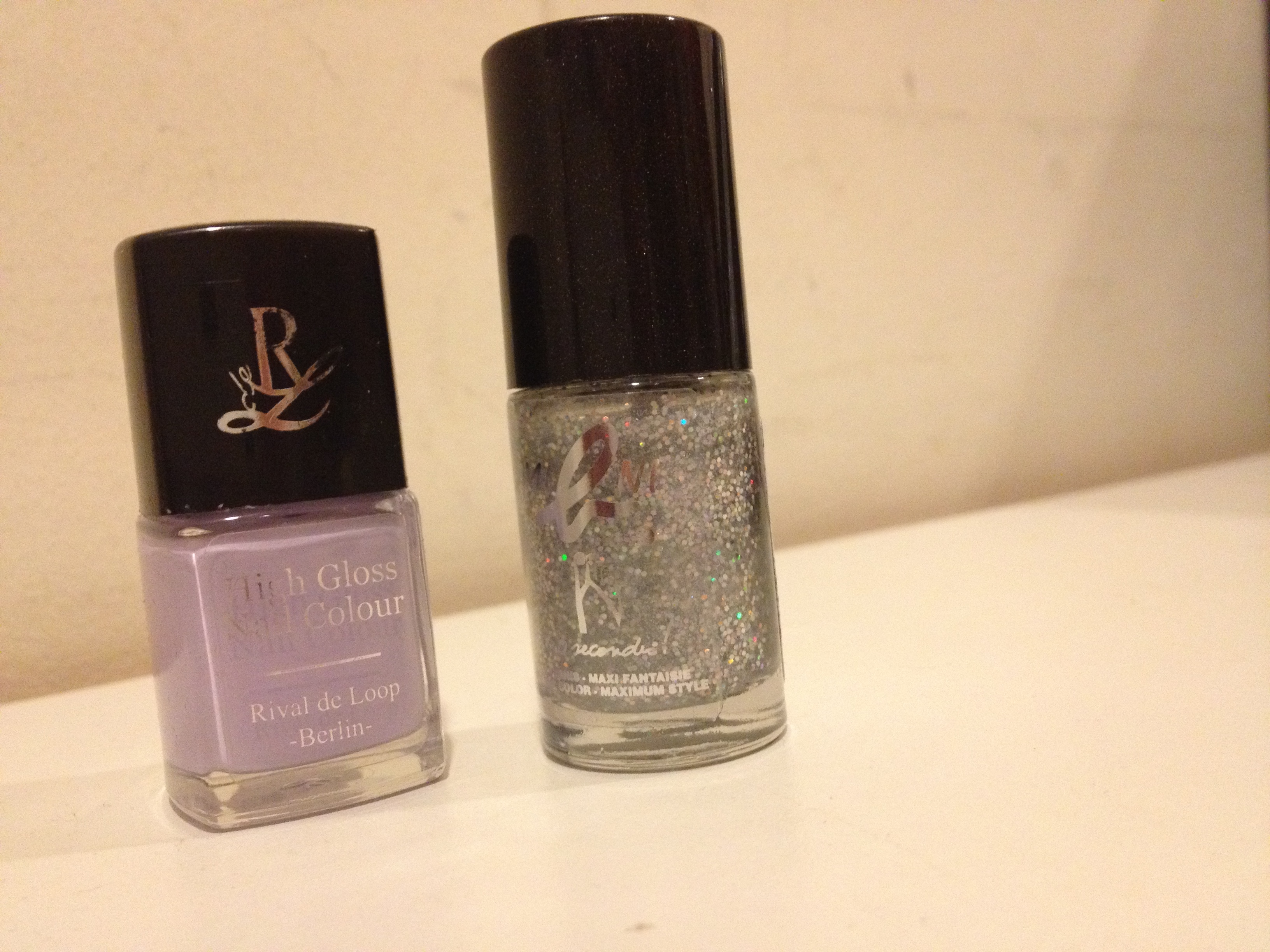 Yes, I’m still obsessed with glitter nails and now I have found the perfect nail polish. It’s called mini B. by Agnes B. and the color is silver pop. It shines in all the colors of the rainbow and it’s great as a top coat, in this case for a pretty lavender from Rival de Loop.