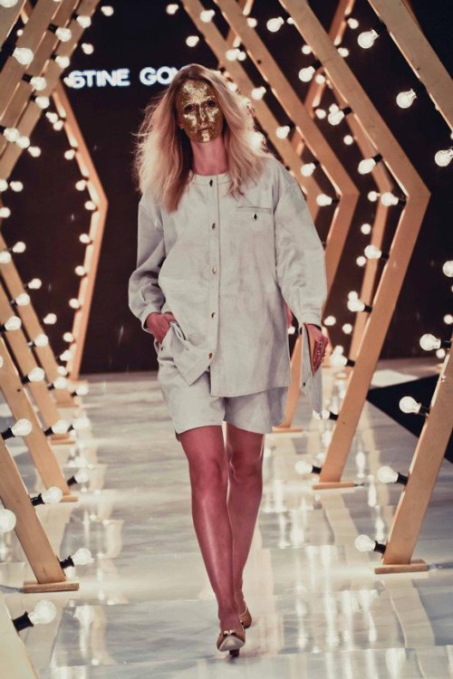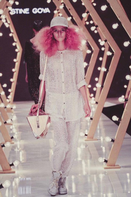 What’s not to love about this amazing fashion show? Stine Goya S/S ’13 is such a fun collection. There is a lot of tone-in-tone as well as pattern-in-pattern going on and the slightly sheer, glittery fabrics are beautiful. The theme of the collection reminds me of Las Vegas and Casinos with all the glitz and glamour as well as the geometrical shapes – maybe a Poker theme?
