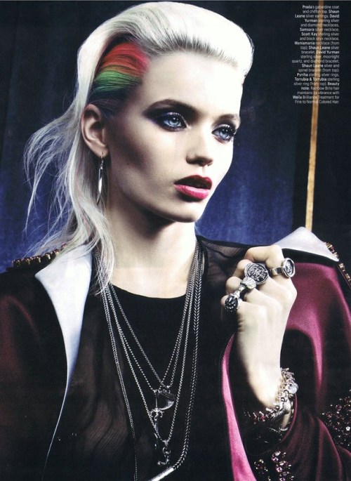 Love these crazy lipstick colors from MAC in this shoot for Hunger magazine. Hunger Fashion Editor Alexander Harley teamed up with make up artist Suzy Rycroft, senior artist at MAC, and made these seemingly unwearable colors, black, blue, purple and even green, really desirable. This model pulls off these odd shades with minimal eye make up and looks beautiful. Personally, I recently bought a purple lipstick just like the one in the picture and I am in love with it. But now, I am considering black..