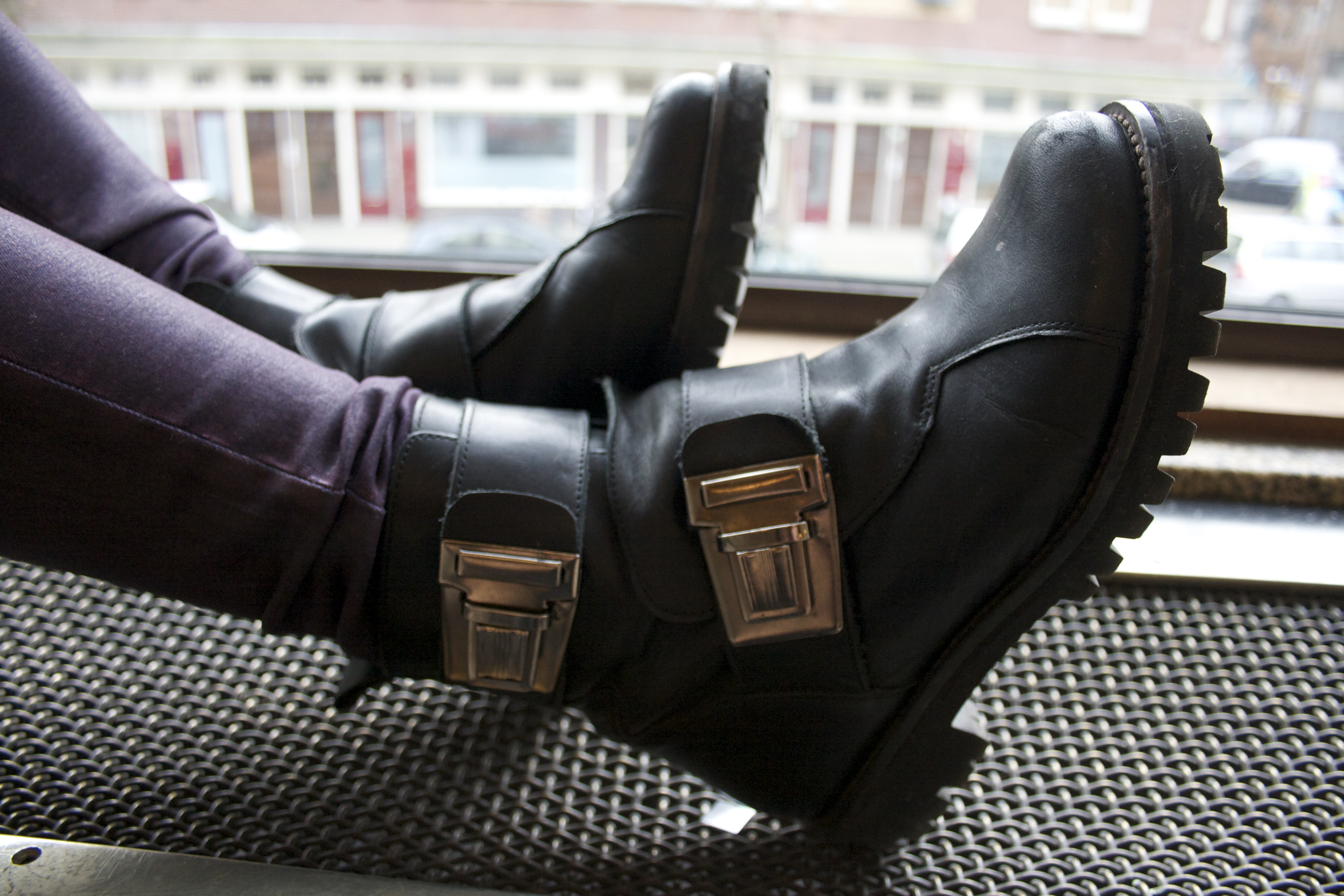 This was actually part of an assignment I had to do for fabric class – photograph an everyday outfit for uni and write about it. So I thought I might as well share it here. I’m wearing a paisley blouse from Zara, Weekday backpack, Asos boots (on sale now – I never learn my lesson, why do I always buy stuff right before it’s on sale?) and my new skinnies: blue jeans with a berry-colored coating.